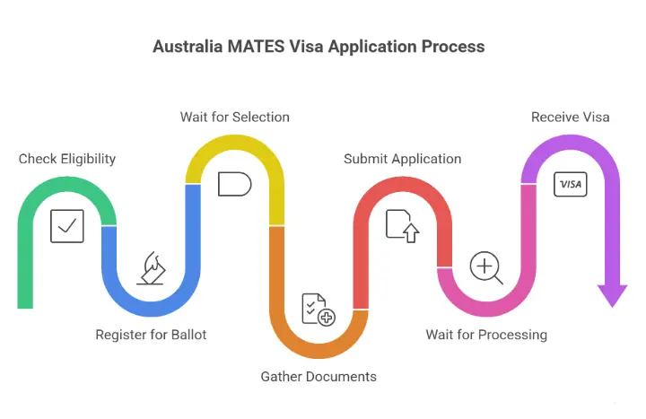 - Applicants must register through the Australia MATES visa ballot system with an AUD 25 fee.